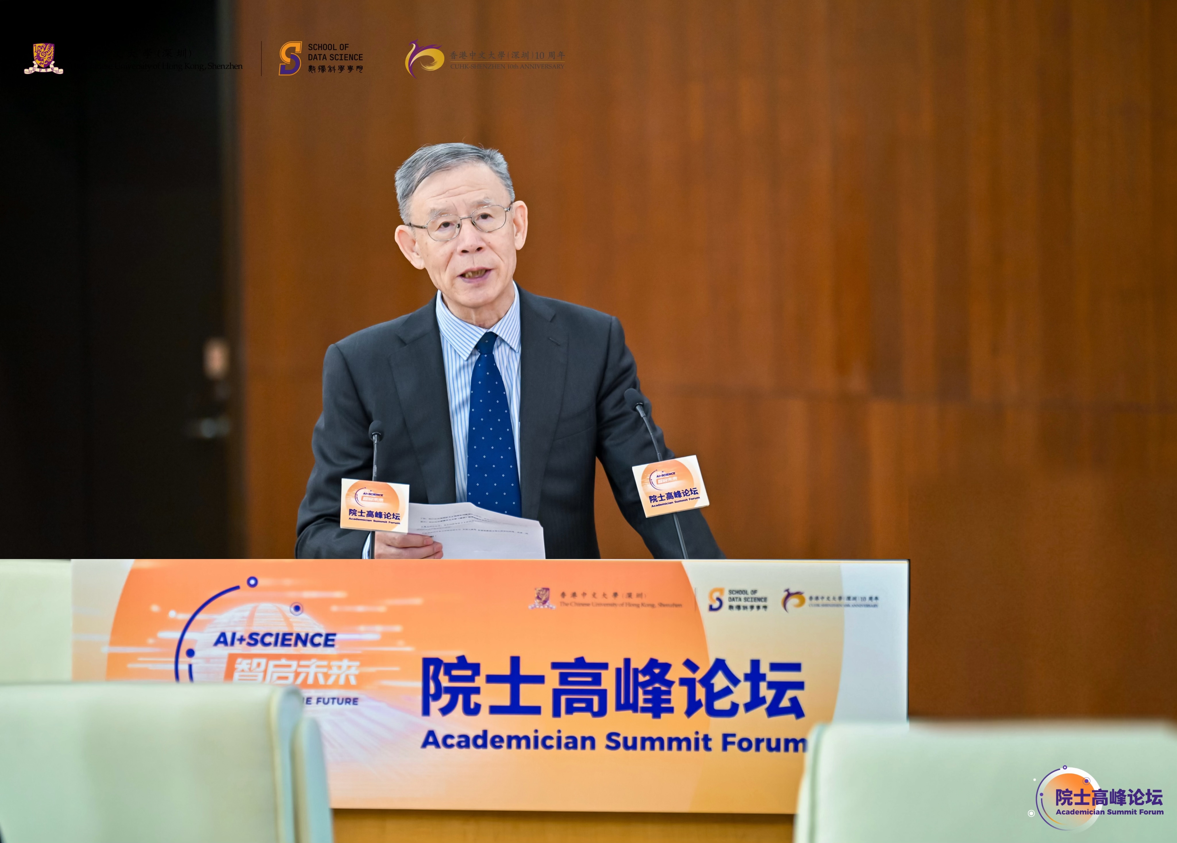 The Academician Summit Forum, jointly organized by the School of Data Science at The Chinese University of Hong Kong,Shenzhen, the Shenzhen Artificial Intelligence and Robotics Research Institute (AIRS), and the Shenzhen Key Laboratory of Pattern Analysis and Perceptual Computing,was held in Shenzhen?on Jan. 27, kicking off a?series of activities?of the?School of Data Science that marks the?10th anniversary of?the university.