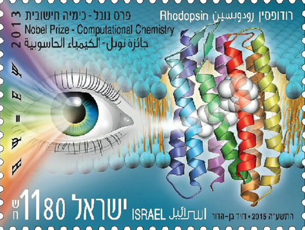 The imprint, which celebrates the United Nations 2015 International Year of Light, was dedicated to the three Nobel Prize laureates in chemistry: Warshel, Martin Karplus and Michael Levitt. One of their most important achievements is the molecular dynamics simulations of biological processes.