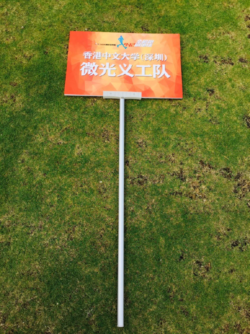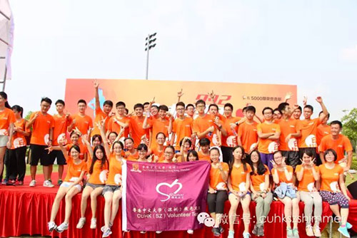 So what is The Orange Run? It’s a civil charity running activity organized by Shenzhen Charity Federation and promoted by hundreds of running groups. This is not only a running event, but also a charitable fund-collecting activity which widely spreads positive energy. If participants run one more mile, social corporations will donate extra 100 yuan for welfare undertaking. The Shimmer volunteer group as well as Running Club of CUHK (SZ) actively organized a square of (?) 50 representatives, including freshmen, sophomores and teachers of our university.