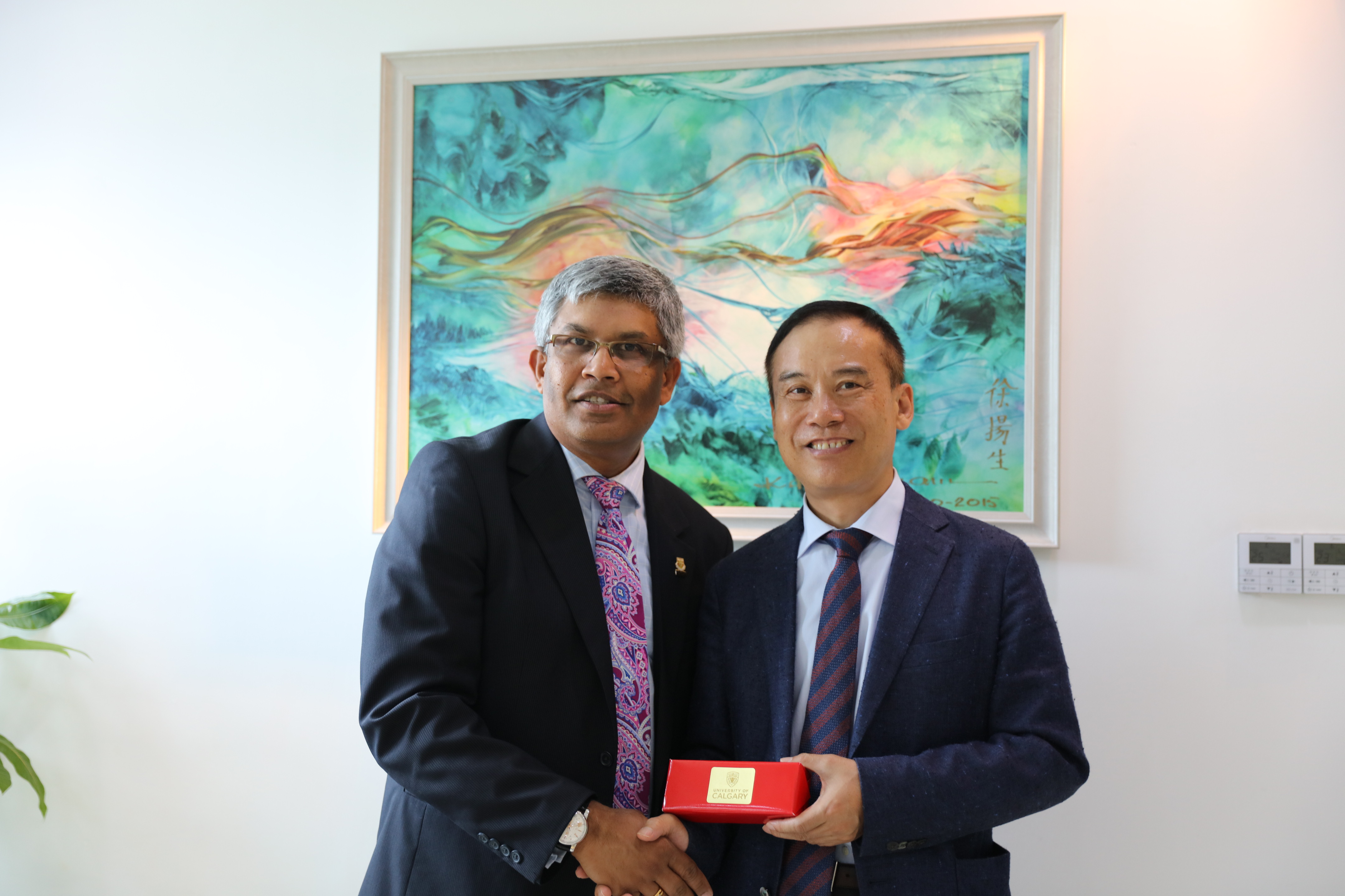 Prof. Janaka Ruwanpura, Vice Provost (International) of University of Calgary visited CUHK(SZ) on 4 July 2017 to explore the possibilities of developing joint degree programs and research collaboration in the areas of Engineering and Business. Prof. Ruwanpura was received by Prof. Yangsheng Xu, President; Prof. Jesús Seade, Associate Vice President for Global Affairs; Prof. Changwen Chen, Dean of School of Science and Engineering; Prof. Wei Xiong, Dean of School of Management and Economics; and other representatives.