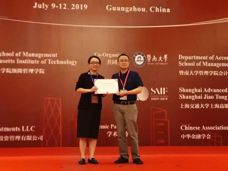 The 14th Yihong Xia Best Paper Award was handed out along with three CICF awards and two XY Investments awards for best papers during the annual CICF. The Award honours the memory of Yihong Xia, formerly an Assistant Professor of Finance at the Wharton School and a distinguished young financial economist, and selects two best papers each year around the world with a rigorous review process. Dr. Chen's paper, together with “Financing Experimentation” by Professor Tong Liu of the University of Pennsylvania, stood out and won the honour in this year's conference.