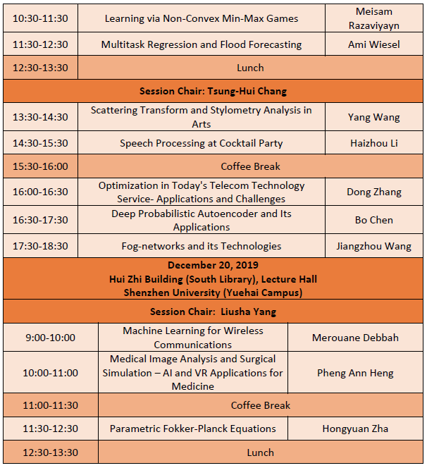 December 18th-19th full day: Invited talks at The Chinese University of Hong Kong, Shenzhen