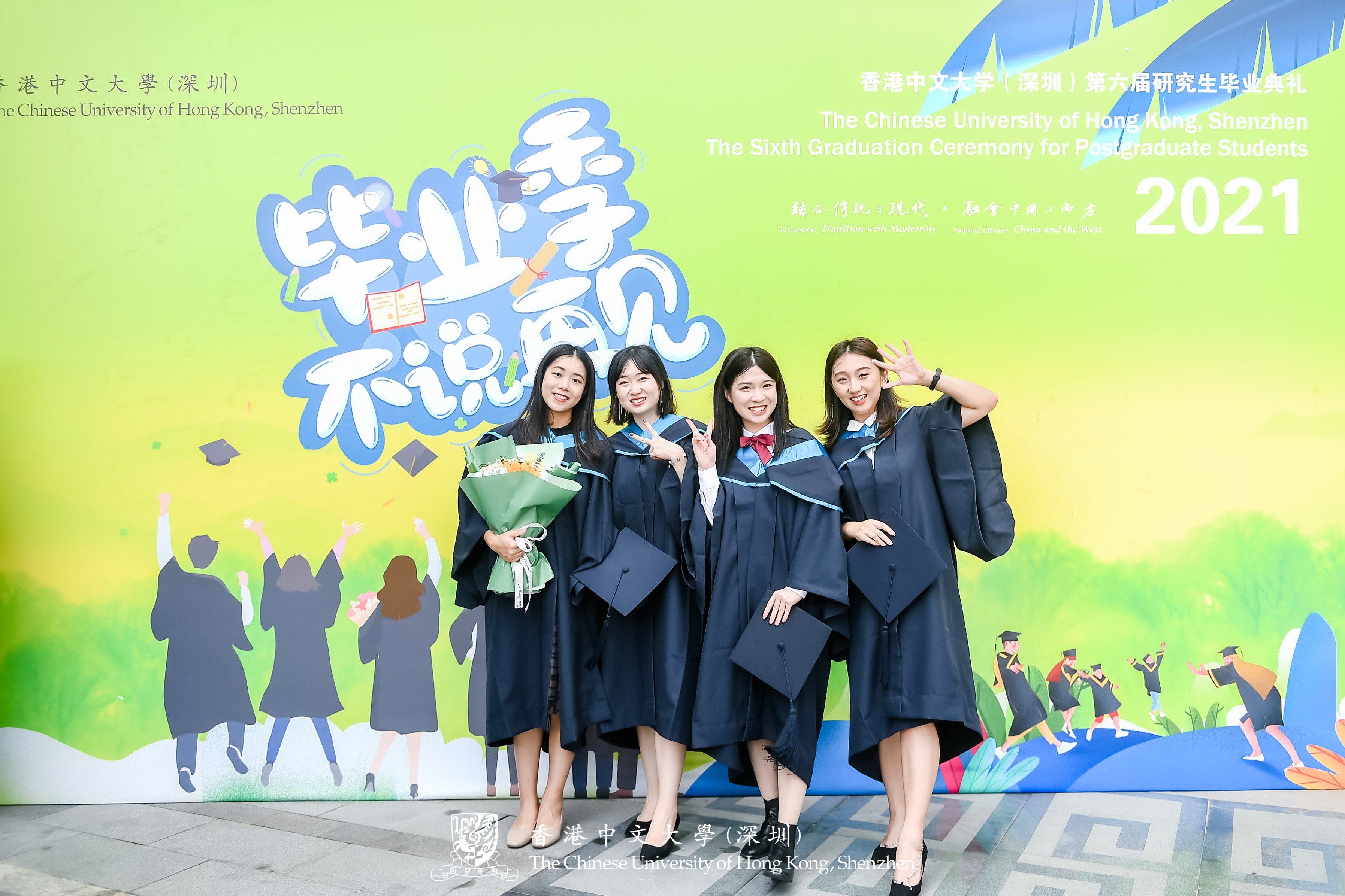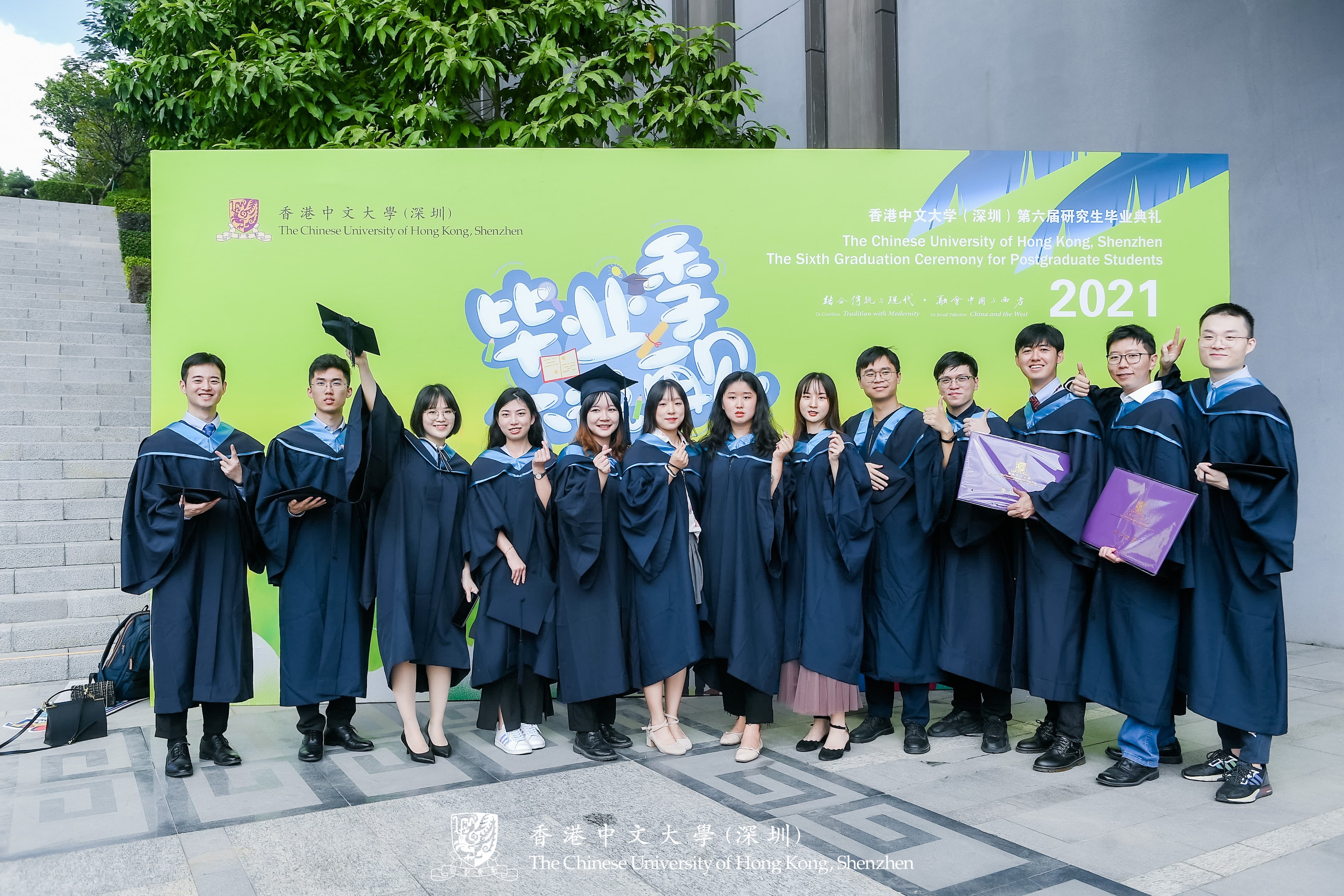 CUHK-Shenzhen's sixth cohort of postgraduate students consists of 728 students, including 718 master's students and 10 doctoral students. Postgraduate programmes offered to this cohort include Management, Accounting, Marketing, Economics, Finance, Computer and Information Engineering, Materials Science and Engineering, Simultaneous Interpreting, Translation & Interpreting Studies, Applied Psychology, Global Studies, Data Science, Financial Engineering, and Supply Chain and Logistics Management. The Guangdong-Hong Kong-Macao Greater Bay Area remains the most popular job destination for Class-of-2021 graduates.