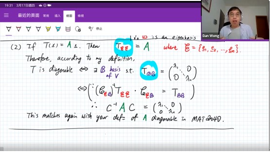 Prof. Daniel WONG demonstrated his lecture in Mathematics with both Ipad and notebook logging into ZOOM. The tablet is used as a whiteboard for students to see the steps of a calculation clearly. Prof. WONG believes that writing out calculation in an online class is one of the most effective ways to keep students’ attention.