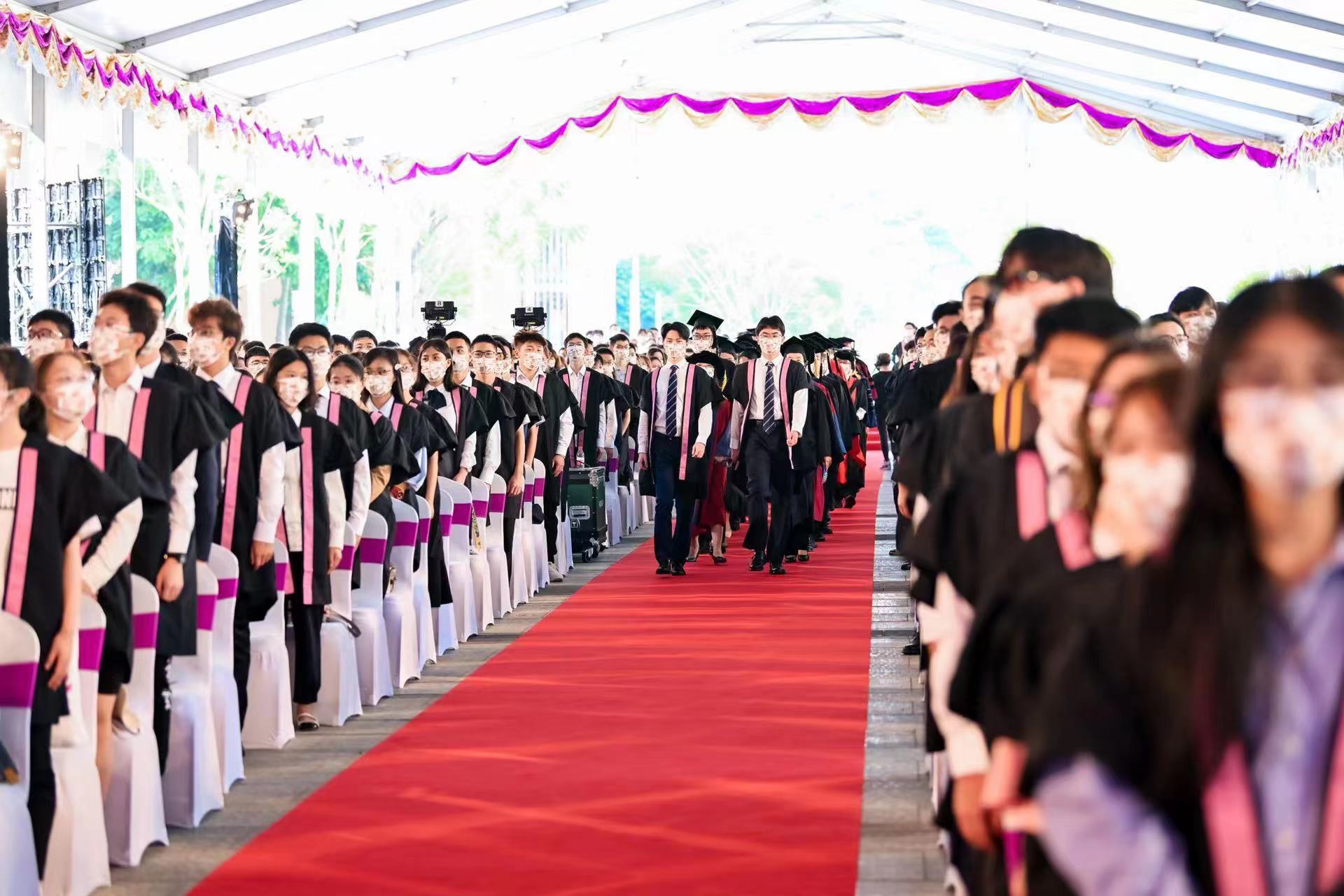 The Inauguration Ceremony 2022 of The Chinese University of Hong Kong, Shenzhen was held on the morning of 3 September, gathering over 3,000 undergraduate and postgraduate students around the world. In response to the COVID-19 control requirements, the ceremony was held in combination of online and in-person participation, including a physical main venue for university officers, professors, and undergraduate students 2022, a number of classroom venues that provide live broadcast for postgraduate students, as well as virtual live-streaming access for parents and friends from all walks of life.