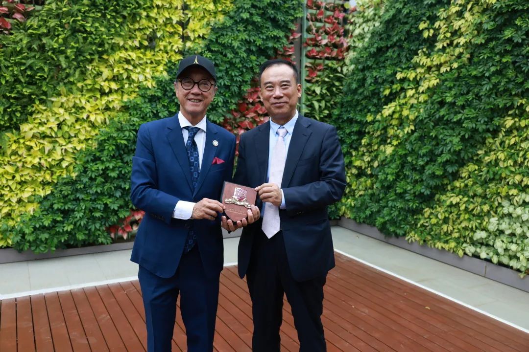 President Chan (left) and President Xu (right) exchange commemorative gifts
