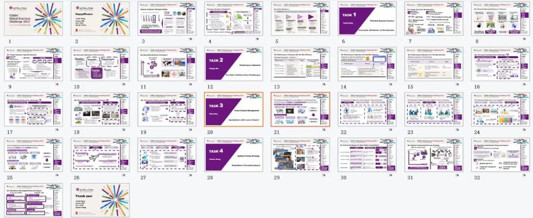 The cases in the CGMA Global Business Challenge are all long and detailed simulations highly closer to the realities that require contestants to have a sense of business and basic judgments based on common sense while integrating the knowledge they have learned to provide practical solutions for enterprises caught in business dilemmas from financial statement analysis, human resources management, quality management, big data application, product profitability analysis and other core aspects of management and accounting. In addition, it also involves the analysis of corresponding markets, marketing strategies, and competitions and challenges the overall quality of the contestants in business in all respects.