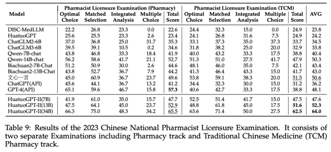 In a recent milestone, the jointly developed second-generation HuatuoGPT (HuatuoGPT-II) by the Shenzhen Research Institute of Big Data (SRIBD) in collaboration with The Chinese University of Hong Kong, Shenzhen (CUHK-Shenzhen) has achieved a triumphant feat by successfully navigating the 2023 Chinese National Pharmacist Licensure Examination. This success follows the model's outstanding performance across a spectrum of medical qualification exams, marking it as the first publicly acknowledged medical LLM in China to achieve this feat. Notably, it has demonstrated particularly promising results in various Chinese medical contexts, surpassing even the renowned GPT-4.?