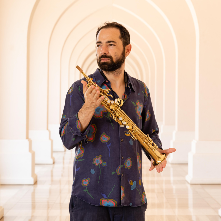 Syrian composer and saxophonist Basel Rajoub integrates the rich melodic and rhythmic nuances of Middle Eastern music into his saxophone performances, creating a distinctive sound. A graduate of the Damascus High Institute of Music, Rajoub's compositions explore the unique microtonal intervals of Middle Eastern music.