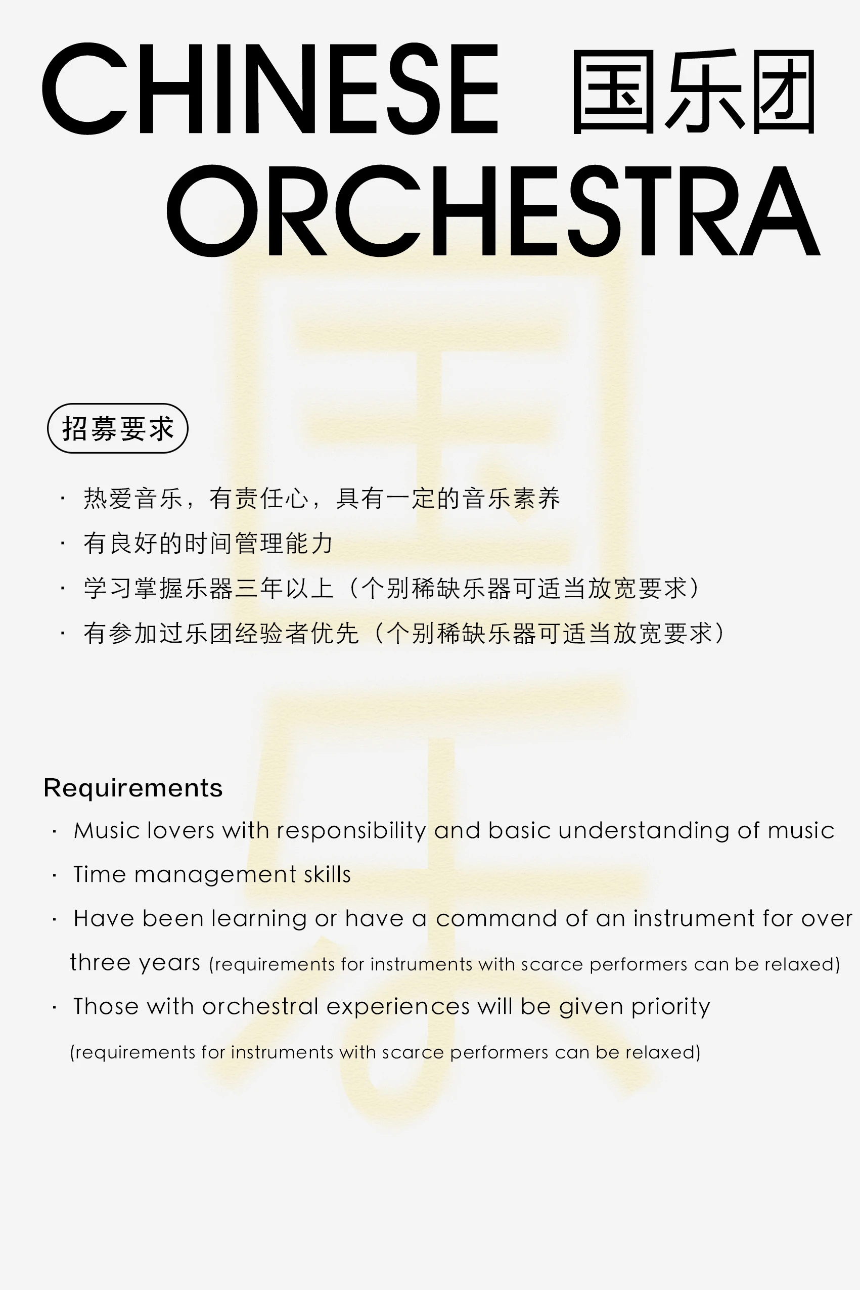 The Chinese Orchestra of The Chinese University of Hong Kong, Shenzhen was established in August 2018. It gathers over 30 Chinese music lovers in the University and becomes fully orchestrated with string, plucked, woodwind, and percussion sections, participating in numerous activities both on and off campus.