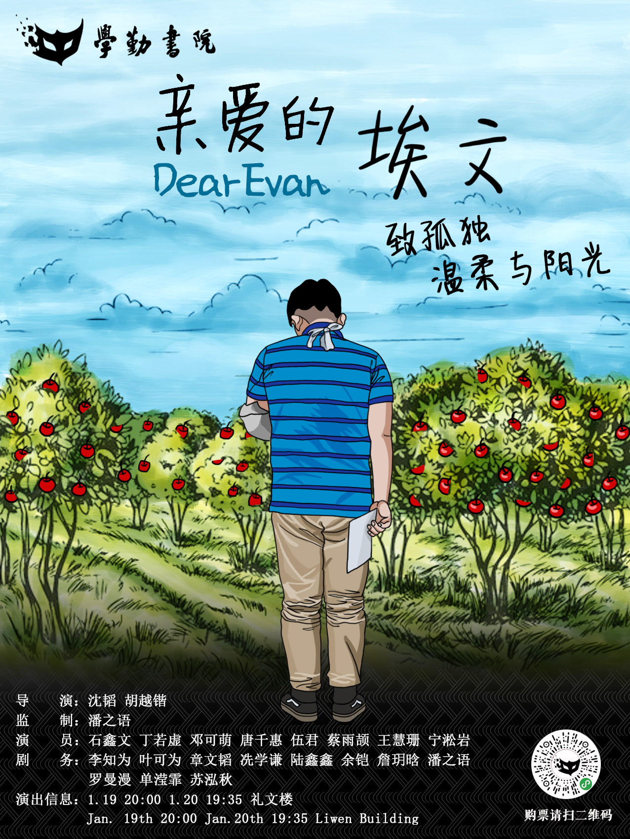 The Annual Drama Performance is adapted from Dear Evan Hansen. It tells the story of a young man with social difficulties that inhibit his ability to connect with other people and make friends. He yearns to get out of loneliness and find recognition. In such an experience, contradictions may appear or resolve, making Evan gain spiritual growth once and for all to become more and more healthy.