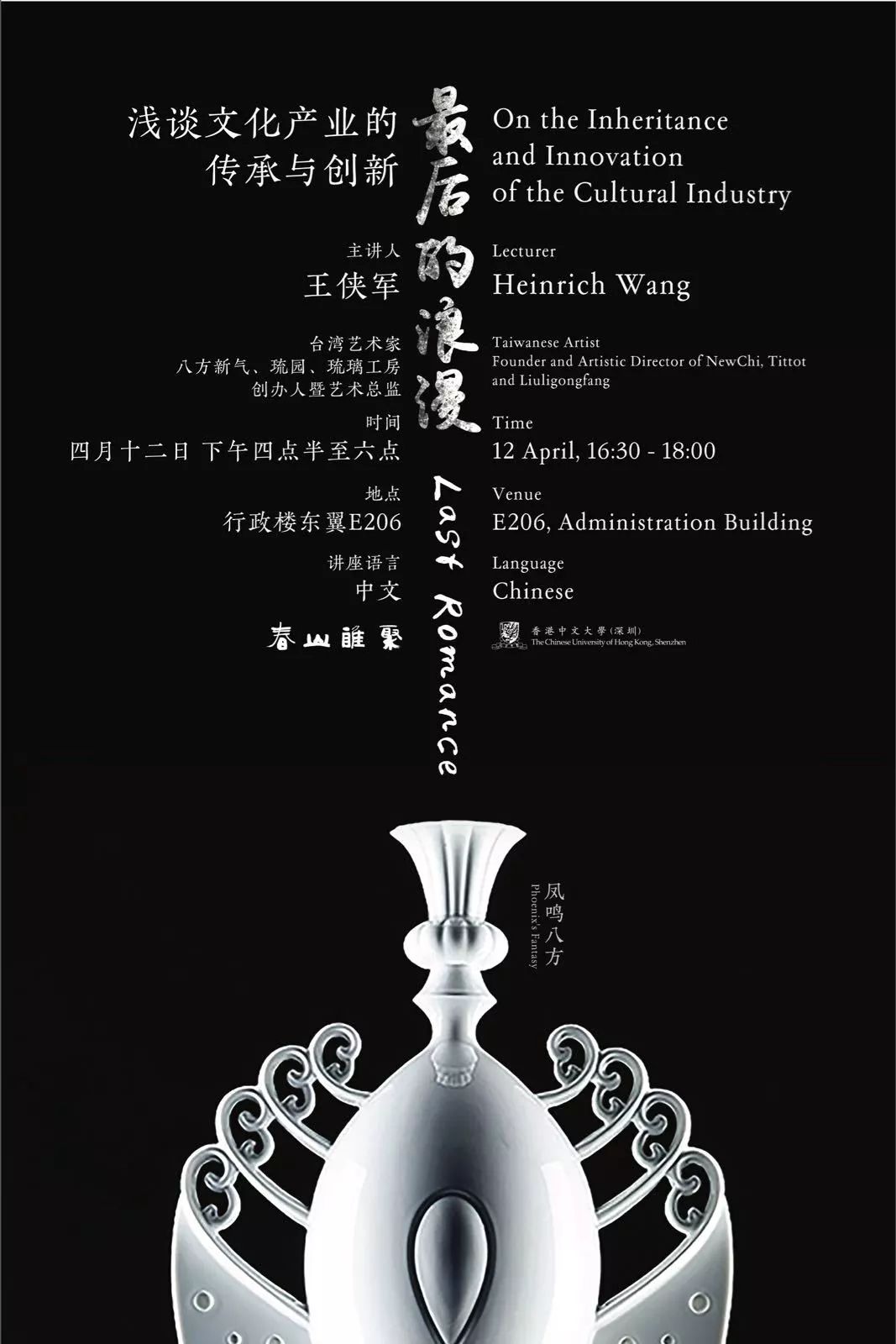 ? ? ?Leaving the film industry, turning to glass craftsmanship, later devoting himself to the study of white porcelain techniques, Heinrich Wang founded NewChi in 2003. After 3 years of focused hard work, Heinrich Wang unveils to the public the Stance Series introducing a new look of 21st century porcelain. Oriental charm and modern imagery, classical elegance and contemporary?lines, the 15th Lecture of the Meeting Intellectuals in the Spring Hills Lecture Series, Heinrich Wong will start us onto the request for the Last Romance.