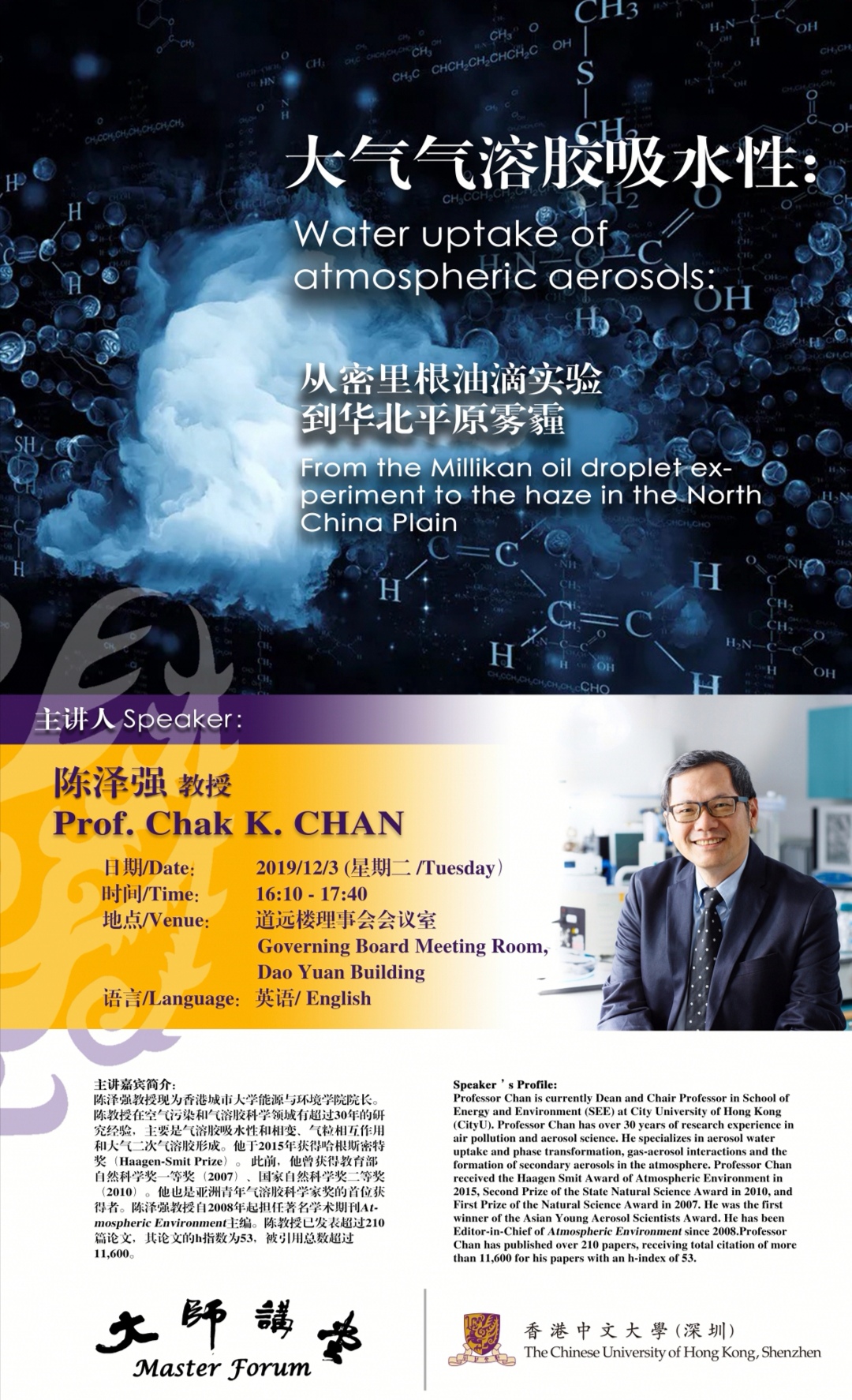 Master Forum|Water uptake of atmospheric aerosols: from the Millikan oil droplet experiment to the haze in the North China Plain