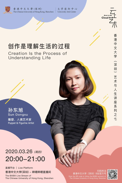 On 26 March, Sun Dongxu, a young artist will be invited to our live streaming lecture "Arts in the Cloud" and talk about her artistic creation.