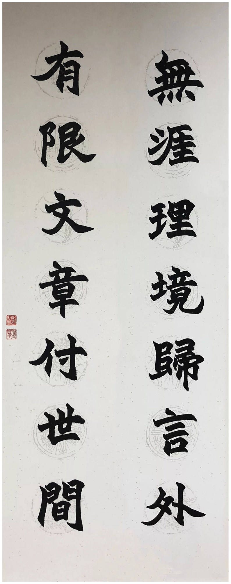 Dr. Kuan-yen Liu used calligraphy to write Professor Lao's couplet
