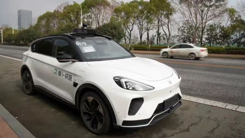 2023年2月24日,一輛來自百度無人駕駛出租車服務Apollo Go的汽車在中國湖北省武漢市的道路上行駛。(圖片來源:CNA引用自路透社/Josh Arslan)
