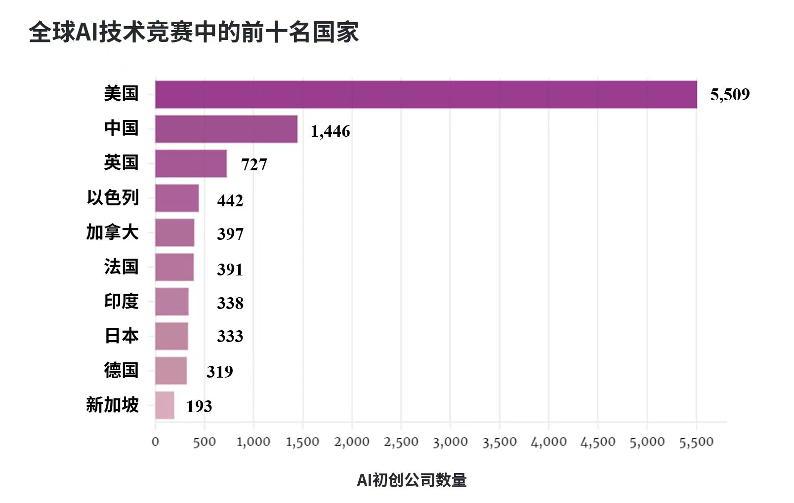 CNA的報道指出,中國已經在全球AI競爭中占據了領先的地位,在全球競爭中僅次于美國。斯坦福大學最新的AI指數報告顯示,中國的AI初創公司在2013年至2023年間總計初創公司1,446家,籌集了1,040億美元的資金,在全球AI競爭中排名第二,僅次于美國。