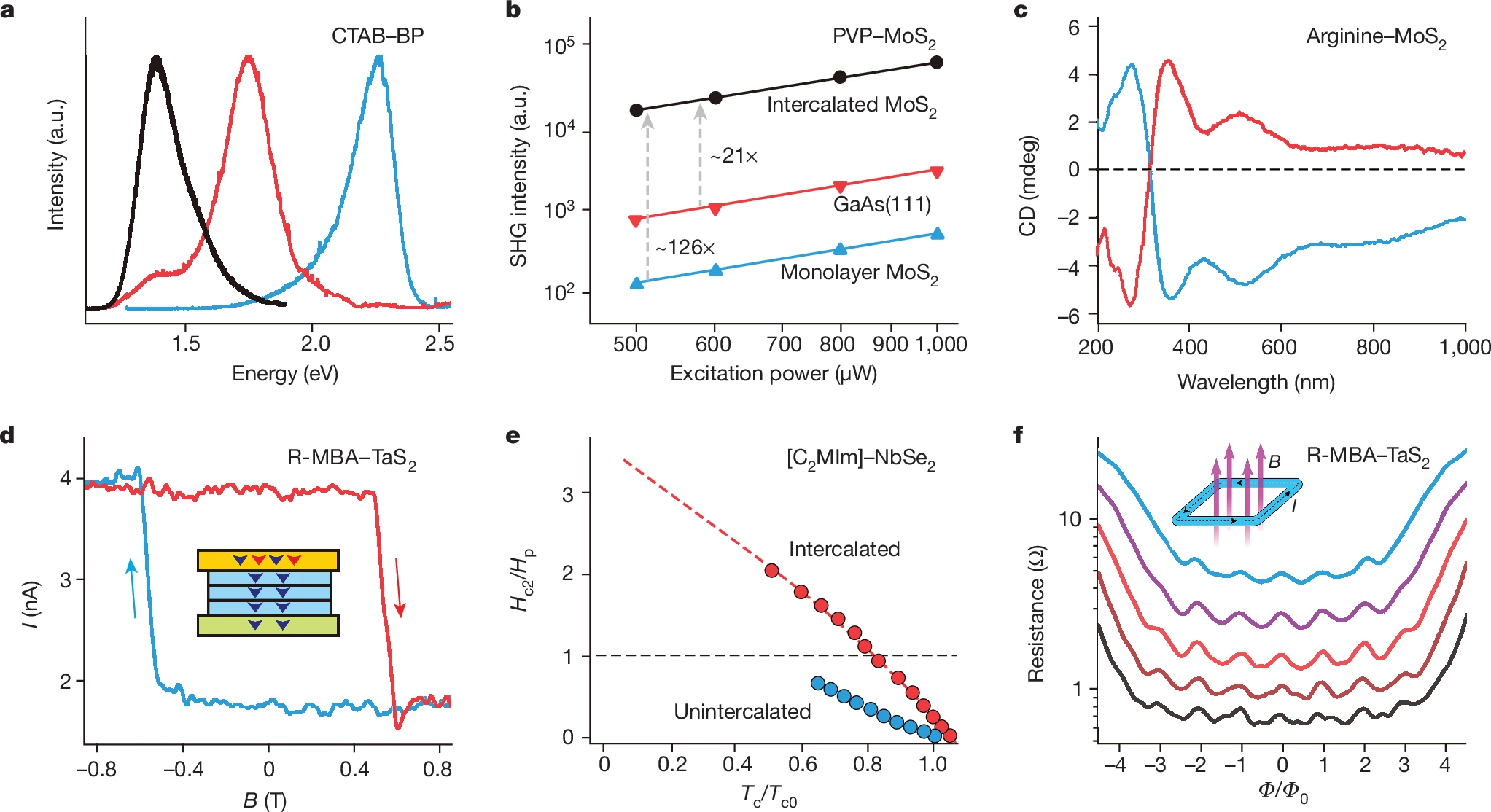 盡管有機分子被認為與經典的、需要超潔凈環境的量子物理不兼容,但是不同拓撲系統的穩健性已證明其高度缺陷容忍特性。通過合理的分子設計和多功能集成策略,有機-無機雜化系統可以將分子復雜性引入固態體系,同時具有豐富的量子特性和穩定的固態環境,實現和利用非常規電子態。實驗上已經在不同層狀雜化超晶格體系中觀測到了包括可控能隙、強二次諧波生成、手性自旋選擇效應、非常規超導等在內的獨特量子現象,并有望在高溫磁性半導體材料、鐵電Rashba半導體材料、室溫激子體系的開發和物性研究上取得突破(圖2)。