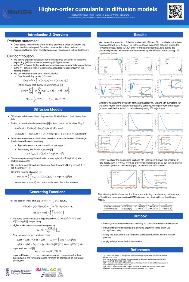 周凱教授近年來研究成果斐然,屢次獲得國際權威期刊和學術會議認可。其論文《Higher-Order Cumulants in Diffusion Models》榮獲最佳“Physics for AI”論文獎(NeurIPS 2024 ?Workshop),該獎項不僅彰顯周凱教授研究的創新性與跨學科特性,更凸顯他在人工智能與物理學融合研究領域的卓越貢獻。