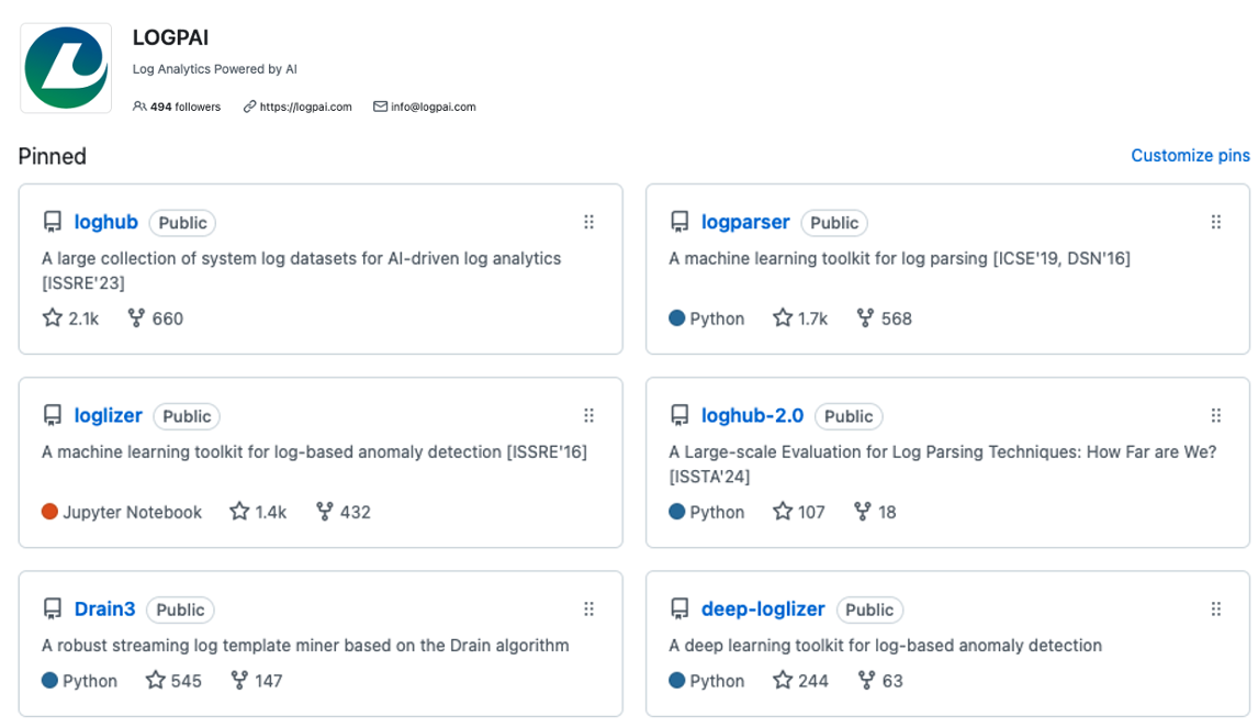 LogPAI在開源軟件平臺GitHub上受到廣泛認可