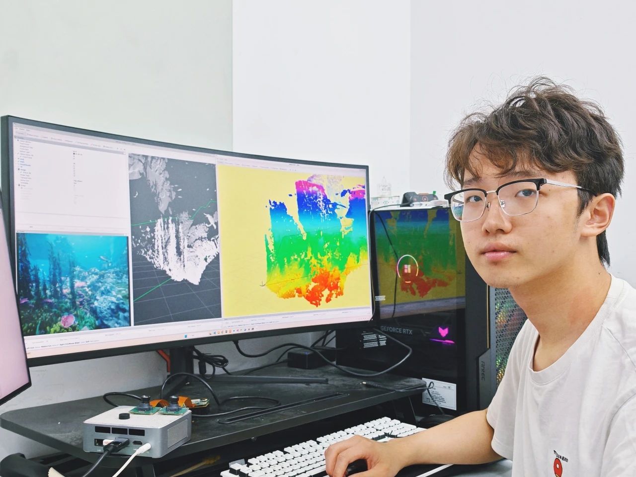 吳均峰教授團(tuán)隊(duì)的研究聚焦于水下機(jī)器人感知技術(shù)的核心問題——如何提升機(jī)器人對(duì)復(fù)雜水下環(huán)境的理解能力。 “水下環(huán)境探索剛剛起步,缺乏GPS信號(hào),同時(shí)電磁波傳播極為有限,”吳教授解釋道, “我們依靠聲學(xué)、視覺和慣性測(cè)量單元等多種感知方式,彌補(bǔ)環(huán)境中的信息丟失。”通過結(jié)合先進(jìn)的傳感器與算法,團(tuán)隊(duì)正在逐步攻克水下環(huán)境中感知低精度、信號(hào)噪聲大的難題。