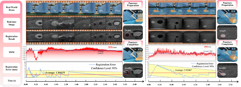 系統整體設計充分結合了臨床操作規范與3D解剖先驗,實現了從圖像獲取、配準導航到穿刺執行的完整閉環。本文還提出了一種在精度與實時性之間取得平衡的導航方法,顯著提升了目標定位的準確性與穿刺的可靠性。實驗驗證結果表明,該系統在多種場景下均表現出良好的可行性、魯棒性與泛化能力,為超聲引導治療的智能化與自動化提供了全新解決方案。該工作為面向實際應用的智能醫療機器人系統提供了有力支撐。