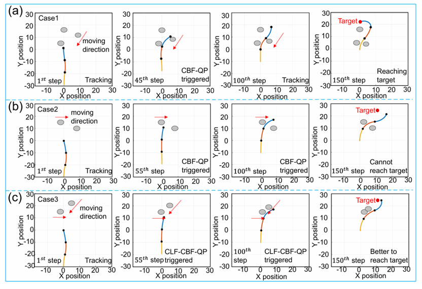 圖:CLF-CBF-QP與CBF-QP動態避障對比