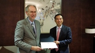 5月19日,世界著名生物信息學家、五院院士邁克爾?沃特曼教授從香港中文大學(深圳)校長徐揚生院士手中接過了本校榮譽教授聘書,成為了香港中文大學(深圳)首位榮譽教授。