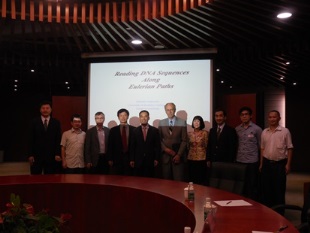 ???? 在本次講座中,沃特曼教授演繹運用著名的瑞士數學家萊昂哈德?歐拉在18世紀創建的圖形理論,介紹如何將DNA序列轉化為De Bruijn序列圖,由此得到歐拉圖的算法中最短距離的巡回序列,通過計算機的功效,來解決基因組的拼接。因為確定與所取得數據相一致的基因組系列就相當于找到了歐拉回路,即最為有效的計算法,從而有效提高基因作圖和測序的效率。
