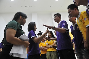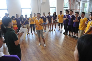 ? ? ? ?為了讓300余位同學(xué)迅速熟悉彼此并融合成一個(gè)團(tuán)體,學(xué)校安排了歷時(shí)3小時(shí)的拓展訓(xùn)練活動,充滿活力和朝氣的學(xué)生在互動活動中拉近了彼此距離。在拓展訓(xùn)練環(huán)節(jié),學(xué)生們在小游戲中,記住了大家的名字并迅速全情投入到了游戲中;在為隊(duì)伍設(shè)計(jì)名稱,口號和風(fēng)采戰(zhàn)士的環(huán)節(jié),同學(xué)們也表現(xiàn)了無限創(chuàng)意,在排練構(gòu)思中成為了一個(gè)融洽歡樂的大家庭。在這個(gè)展示環(huán)節(jié)中,同學(xué)們不斷摩擦碰出火花,還造就了在晚上盛大的千人宴上的精彩節(jié)目。