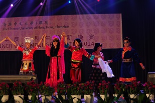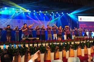 ? ? ? ?9月1日晚,“千人宴”當(dāng)真名副其實(shí),來自全國17個(gè)省的近千名學(xué)生和家長齊聚一堂。學(xué)生們在短短的兩天時(shí)間內(nèi),從互不認(rèn)識到同心協(xié)力同臺演出,為來自五湖四海的同學(xué)、家長、學(xué)者獻(xiàn)上了一臺融會東西方特色的迎新晚宴。當(dāng)晚的節(jié)目以燭光開場,寓意星星之火必將燎原。隨后,志愿者們用一曲曲膾炙人口的中英文童謠、民謠回顧自己的成長歷程,其熱情與活力推開了晚宴序幕。新生們在創(chuàng)意上別出心裁,有科技與國學(xué)并舉的“機(jī)器人書法表演”、也有地方特色濃厚的群組方言秀、更有感人至深的父母感言和精致婀娜的舞蹈環(huán)節(jié)等環(huán)節(jié)。民族的同學(xué)也成為此次迎新晚宴的主力,這其中包括16名來自9個(gè)不同少數(shù)民族的同學(xué),共同為在場觀眾帶來的民俗服裝秀表演,16位同學(xué)身著自己本民族服裝,以民族舞蹈為主題動作,將各個(gè)民族熱情好客的一面展現(xiàn)的淋漓盡致。首屆新生不僅成績優(yōu)秀,迎新晚宴更是給他們提供了展現(xiàn)風(fēng)采的舞臺。
