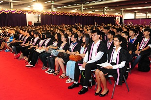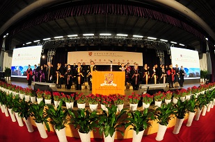 ? ? ? ?9月2日,系列迎新活動中最具分量的一個(gè)環(huán)節(jié)——2014年度本科生入學(xué)典禮在體育館隆重舉行。主席臺上的典禮行列人員都身著肅穆的學(xué)術(shù)長袍,全體的學(xué)生都身著學(xué)生袍,彰顯著這所立志成為世界一流研究型大學(xué)的嚴(yán)謹(jǐn)與莊重。這不僅是一個(gè)簡單的儀式,繼承了香港中文大學(xué)的傳統(tǒng),學(xué)生們從“著袍儀式”起,就要立下學(xué)術(shù)研究之志,在“全人教育”理念下,力求自己學(xué)術(shù)與人格品質(zhì)的全面發(fā)展。在奏國歌儀式后,校長徐揚(yáng)生教授以《艱難玉成,時(shí)代元棟》為題致歡迎辭,勉勵孩子們朝著夢想一往無前,成長為具有出色的專業(yè)知識、對國家有擔(dān)當(dāng)、有獨(dú)立思辨能力和高尚道德情操的社會棟梁。他還引用古人的話:“‘大鵬一日同風(fēng)起,扶搖直上九萬里’,我們有足夠的信心,把這所學(xué)校建成世界一流的研究型大學(xué)。讓我們一起朝著我們的夢想,勇敢地往前走去。” 隨后,香港中文大學(xué)校長沈祖堯教授以”將生命與卓越結(jié)合的高等教育“為題,圍繞我們在高等期待培養(yǎng)怎么樣的學(xué)生品質(zhì)做了主題演講;1996年諾貝爾獎經(jīng)濟(jì)學(xué)獎得主詹姆斯?莫里斯教授給新生們上了開學(xué)第一課。其中,莫里斯以什么是經(jīng)濟(jì)、大家對經(jīng)濟(jì)的理解為內(nèi)容,重新為新生們解讀經(jīng)濟(jì)學(xué)。獲得全額免學(xué)費(fèi)助學(xué)金的山東籍學(xué)生和印度籍國際生分別用中英文做了學(xué)生代表發(fā)言。
