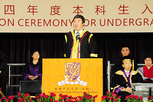 ? ? ?(沈祖堯校長(zhǎng)參加2014年度香港中文大學(xué)(深圳)本科生入學(xué)典禮)