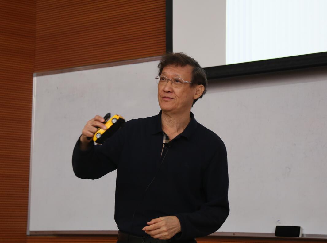 ?????? 在學生眼中,唐叔賢院士的課常常有驚喜發生。理工學院計算機專業的俞佳含同學說,為了讓同學們更好地了解一些物理概念,唐院士會拿來不少教具到課堂上,其中不乏一些玩具,比如將蘭博基尼車模作為物理模型讓大家腦洞大開。