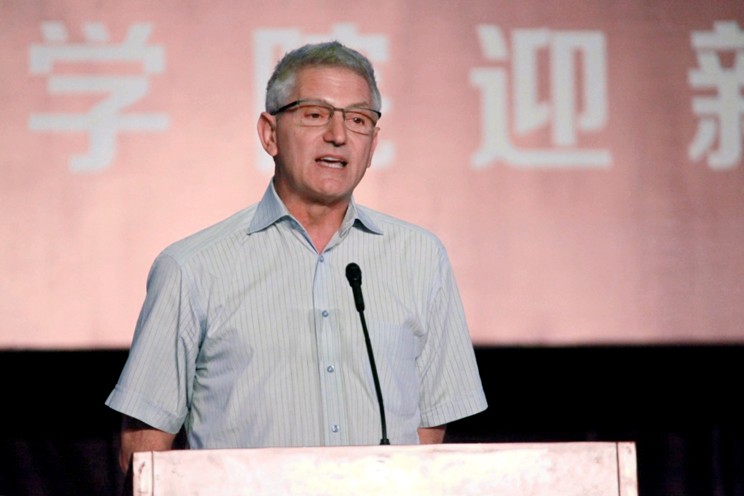 Stephen Boyd教授在香港中文大學(深圳)理工學院迎新禮上發言,鼓勵同學們積極創新,專注科研?