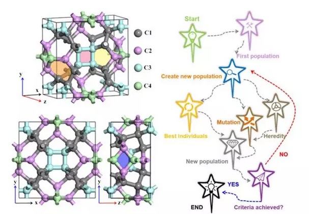 右圖:基于遺傳算法的材料結構性質智能篩選示例