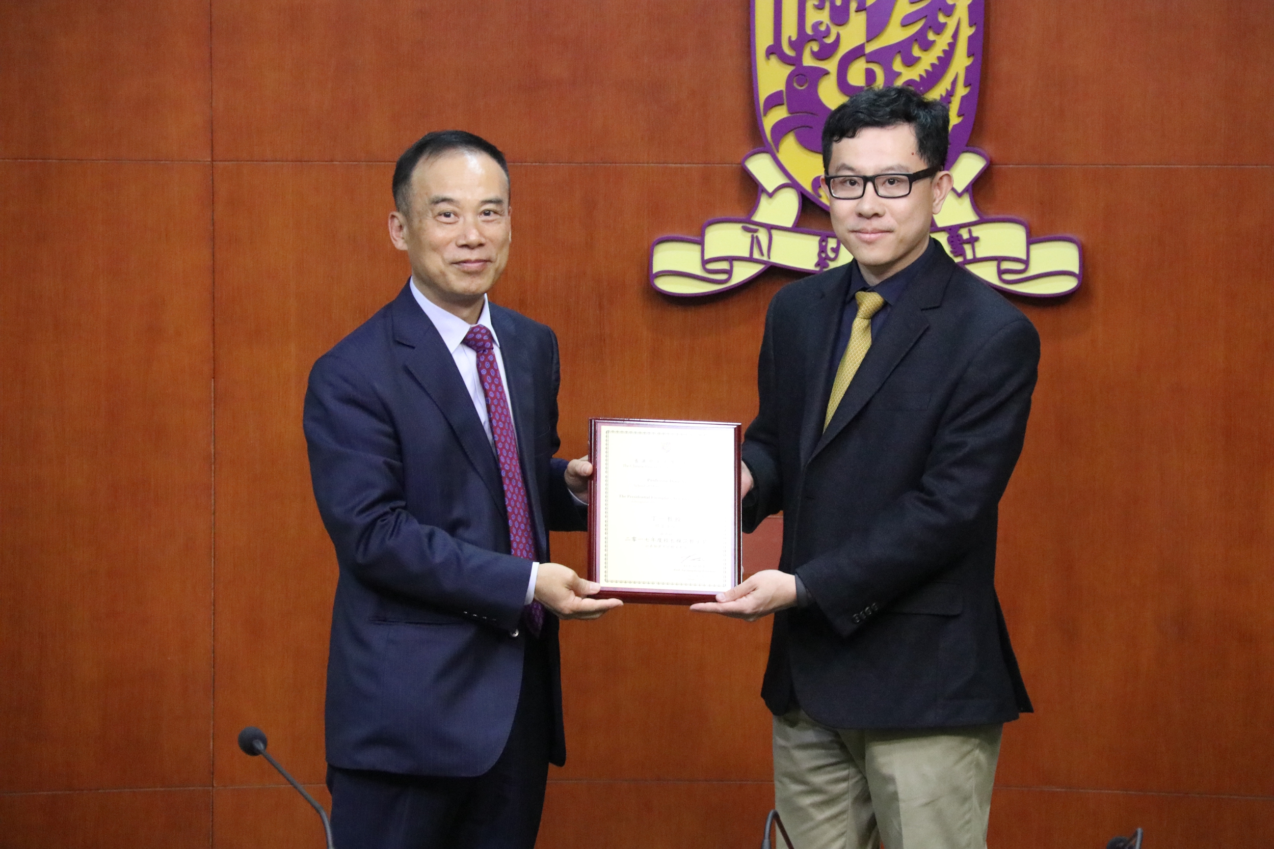 理工學院院長陳長汶教授和人文社科學院院長范息濤教授為“優秀學生”獎項獲得者頒獎
