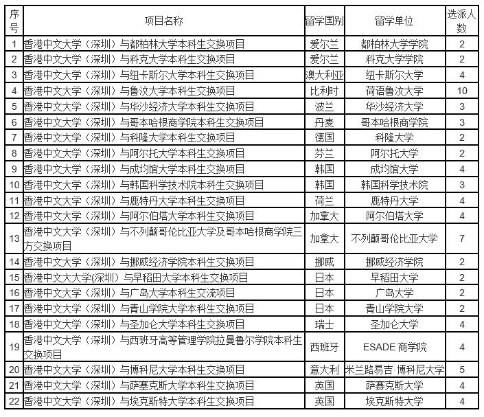 附:香港中文大學(xué)(深圳)2018年優(yōu)秀本科生國際交流項(xiàng)目資助項(xiàng)目一覽表