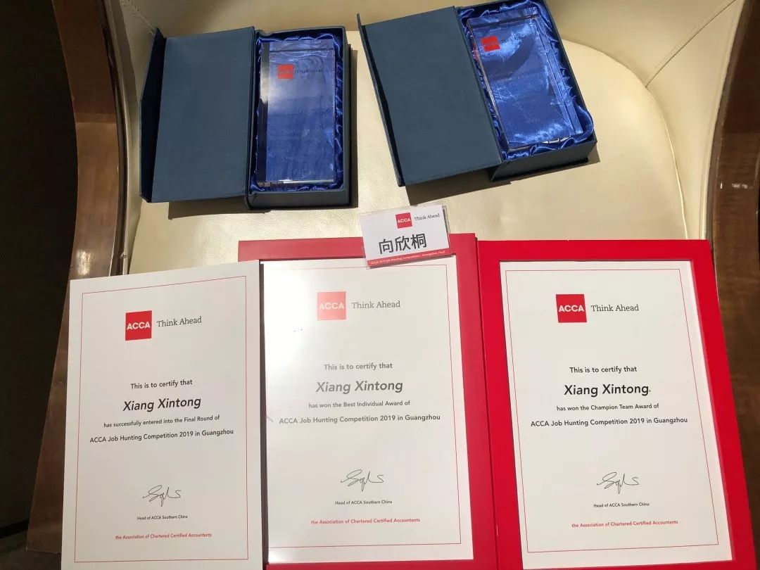 ? ? ? ? 5月10日,ACCA全國就業力競賽(Job Hunting Competition)華南賽區決賽在廣州四季酒店完美落幕。在王亞坤教授的指導下,我校經管學子向欣桐同學參與的代表隊榮獲冠軍,向欣桐同學斬獲最佳個人表現獎。
