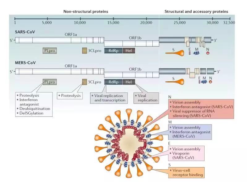 冠狀病毒的主要結(jié)構(gòu)蛋白及非結(jié)構(gòu)蛋白(Zumla et al., 2016)
