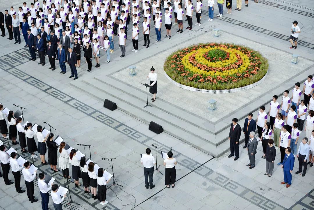 ? ? ? ? 升旗儀式后,香港中文大學(深圳)合唱團演唱了歌曲《追尋》及《我和我的祖國》(領唱:黃順真老師、王宜偉老師),用歌聲祝福偉大祖國繁榮昌盛。