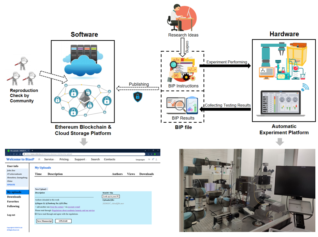 近日,深圳市人工智能與機器人研究院(簡稱AIRS)普適人工智能應用研究中心的朱熹教授團隊開發了目前世界上第一套基于區塊鏈和云存儲技術的自動實驗系統。其研究成果“The Blockchain Integrated Automatic Experiment Platform (BiaeP)?”被美國化學學會期刊?JPC Letters?接收?。