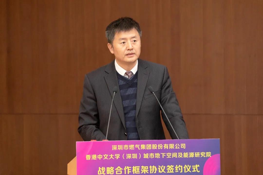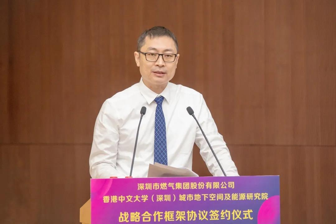 香港中文大學(xué)(深圳)校長徐揚生院士、城市地下空間及能源研究院院長何繼善院士、協(xié)理副校長李學(xué)金教授、校長顧問吳月霞女士、校長助理盧國師先生,深圳燃氣集團公司董事長李真先生、總裁張小東先生、副總裁楊光先生、安全總監(jiān)王文想先生等出席簽約儀式。香港中文大學(xué)(深圳)校長講座教授崔曙光教授擔任儀式主持人。?
