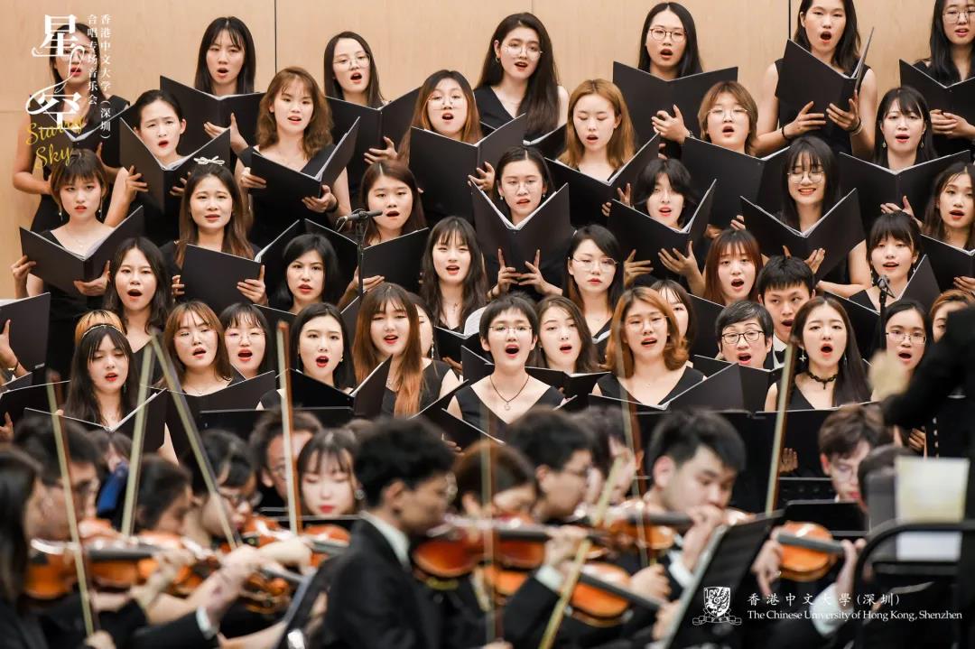香港中文大學(深圳)藝術團體用兩場音樂盛宴詮釋了學校中西融合全面發展的文化底蘊,彰顯了當代大學生亮麗蓬勃的青春朝氣,用動聽旋律向全社會傳遞美好與真摯。香港中文大學(深圳)副校長朱世平教授、深圳交響樂團團長聶冰等領導、音樂家以及廣大師生校友共同欣賞了音樂會。