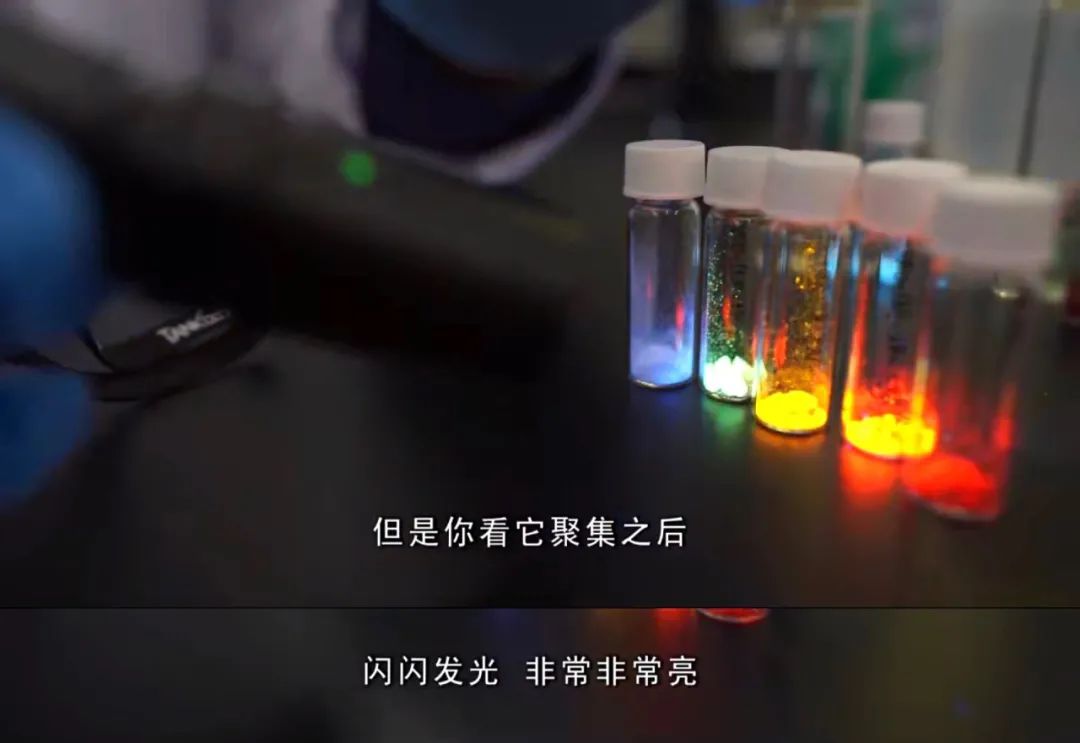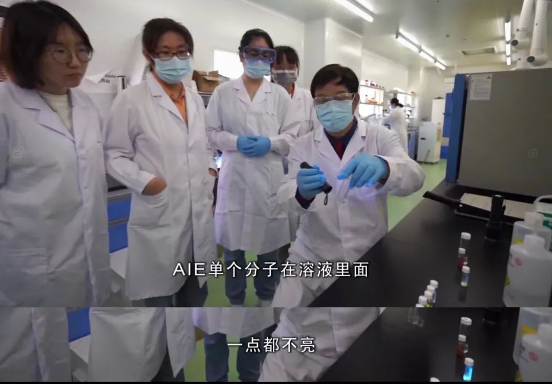 ? ? ? ?“以前的很多發光材料,它們作為分子存在的時候,閃閃發光。但是一旦聚在一塊之后,它的發光會減弱,甚至有時候會不發光。我們的東西(AIE)恰好是相反的。”