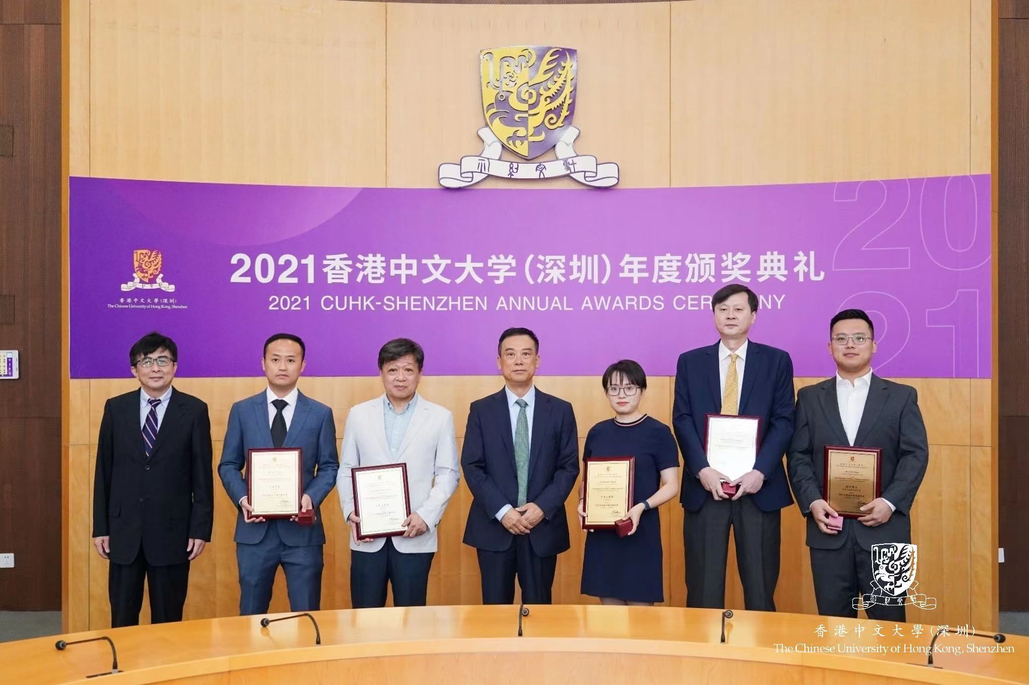 ? ? ? 校長徐揚生為獲得校長模范教學獎和模范教學助理獎的教師頒獎。校長模范教學獎是香港中文大學(深圳)教師的最高獎項,旨在表揚教學卓越的教師并體現大學對提供優質教育的承擔。2017年至今共有16名教師獲得這項榮譽。榮獲2021年度校長模范教學獎的六名教師是:經管學院劉洪七、理工學院王學鋒、人文社科學院王曉田和王琛、醫學院|生命與健康科學學院楊洲、數據科學學院李文燁。