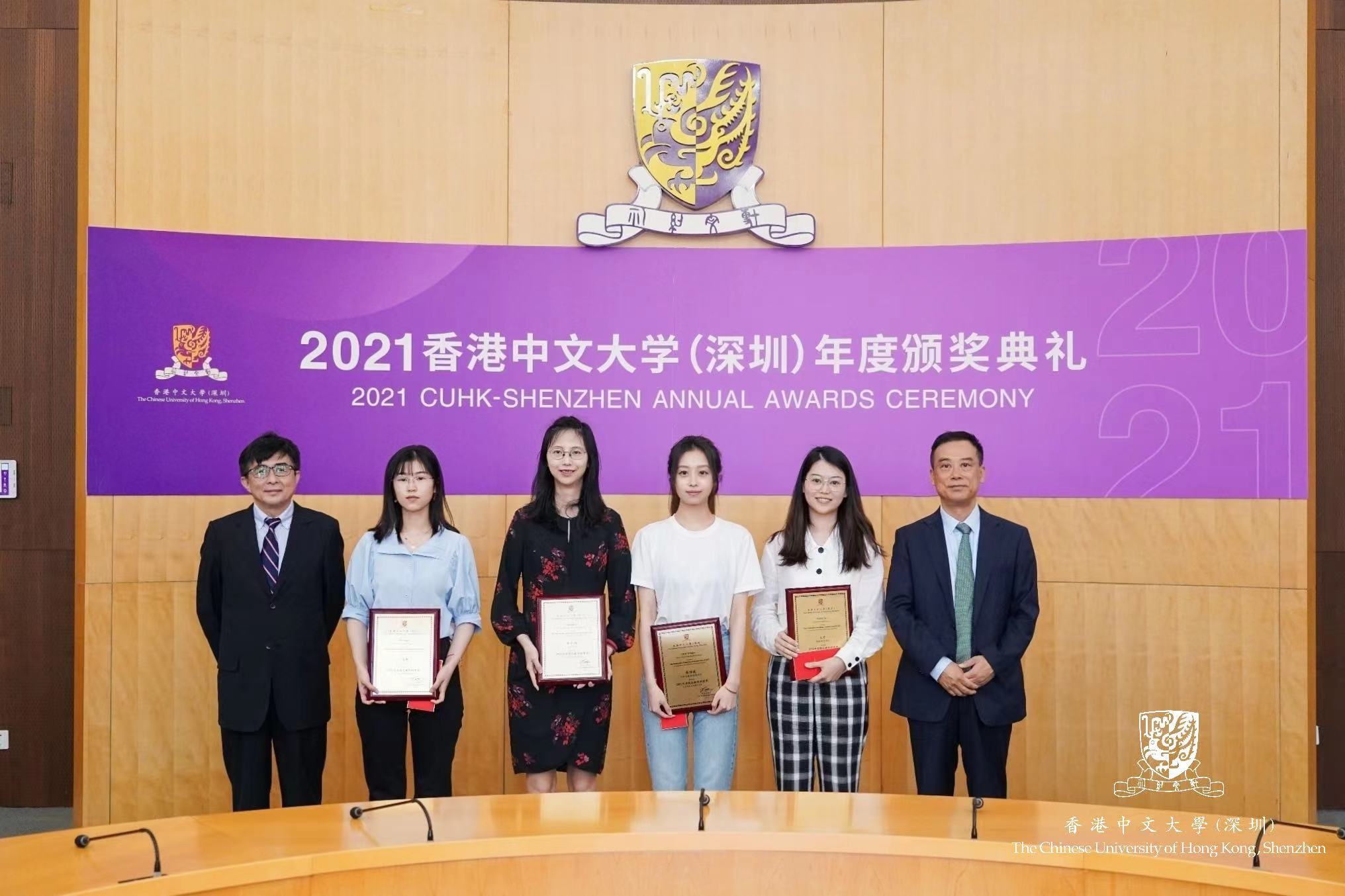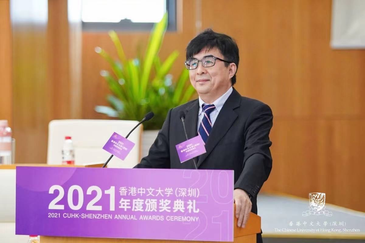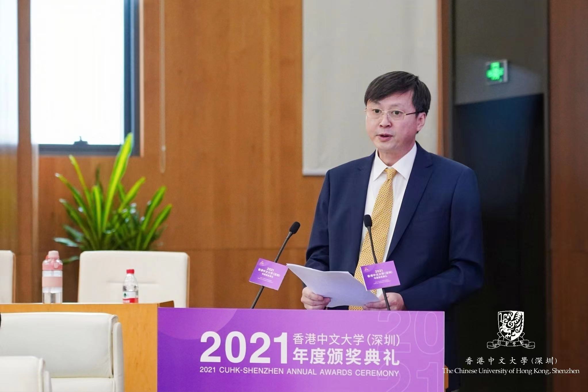 2022年5月6日下午,香港中文大學(深圳)舉行了隆重的頒獎典禮,表彰2021年度對學校各方面工作做出杰出貢獻的十三位教師與一百三十六名學生 。香港中文大學(深圳)校長徐揚生教授,副校長阮健驄先生,協理副校長蔡小強教授、顧陽教授,研究生院院長王學鋒教授,各學院和書院的負責人,學生事務處、學能提升研究中心負責人以及部分獲獎師生出席了本次線上線下同步舉行的頒獎典禮。