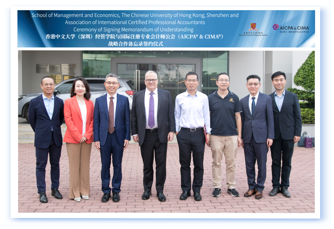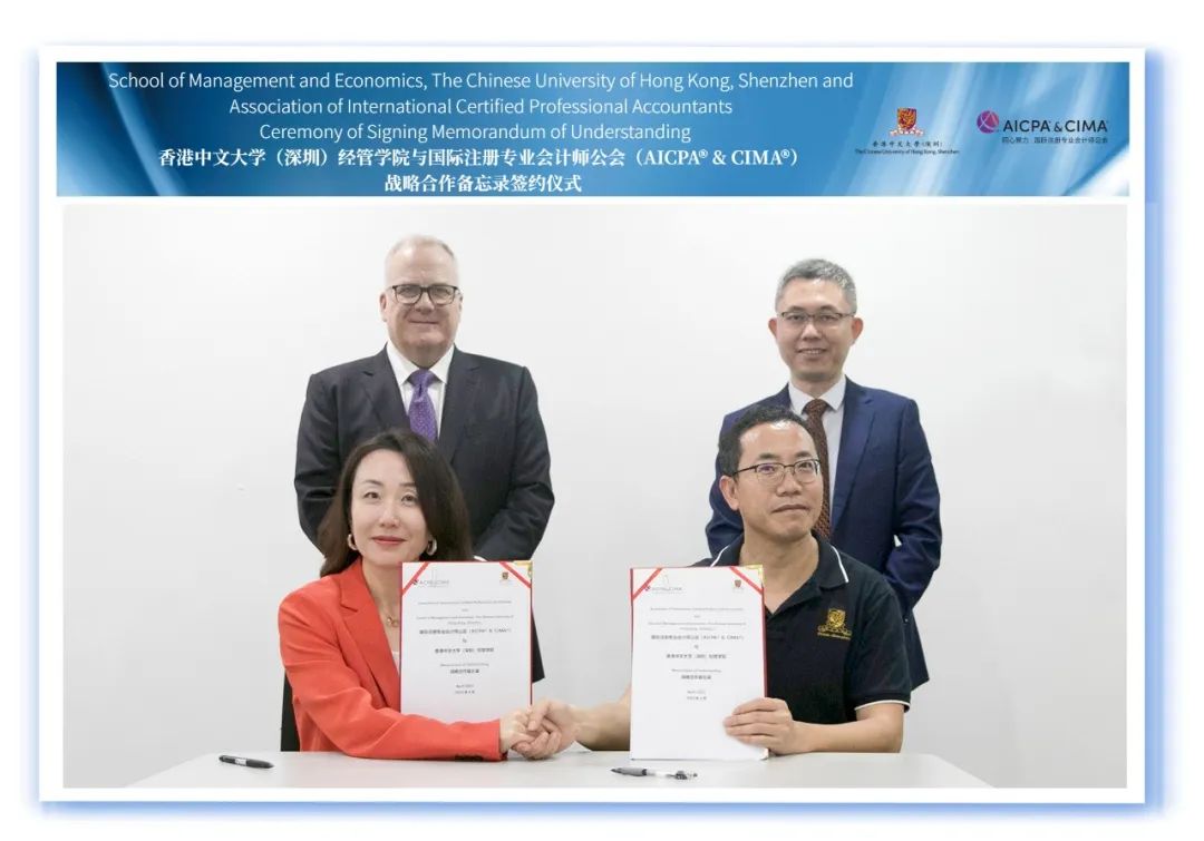 日前,香港中文大學(深圳)經管學院與國際注冊專業會計師公會(AICPA? & CIMA?)簽署戰略合作備忘錄。雙方將結合資源優勢,聯合培養立足國際前沿,具備數字化能力和國際化視角的未來財務和金融人才,并依托各方的平臺,共同推動研究領域的多方位合作,推進具有前瞻性和可持續性的財務和金融專才梯隊以及數字化管理會計學科體系的建設。