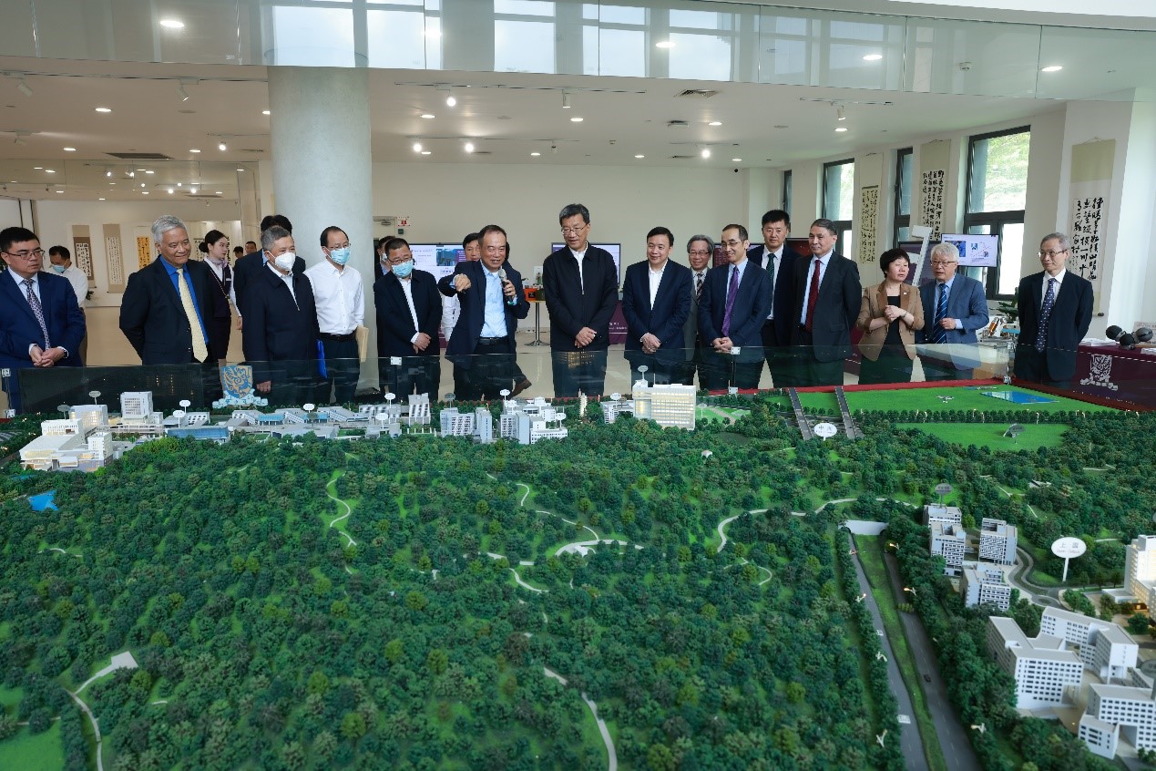 懷進鵬部長一行來訪香港中文大學(深圳),校長徐揚生為其介紹大學概況并合影
