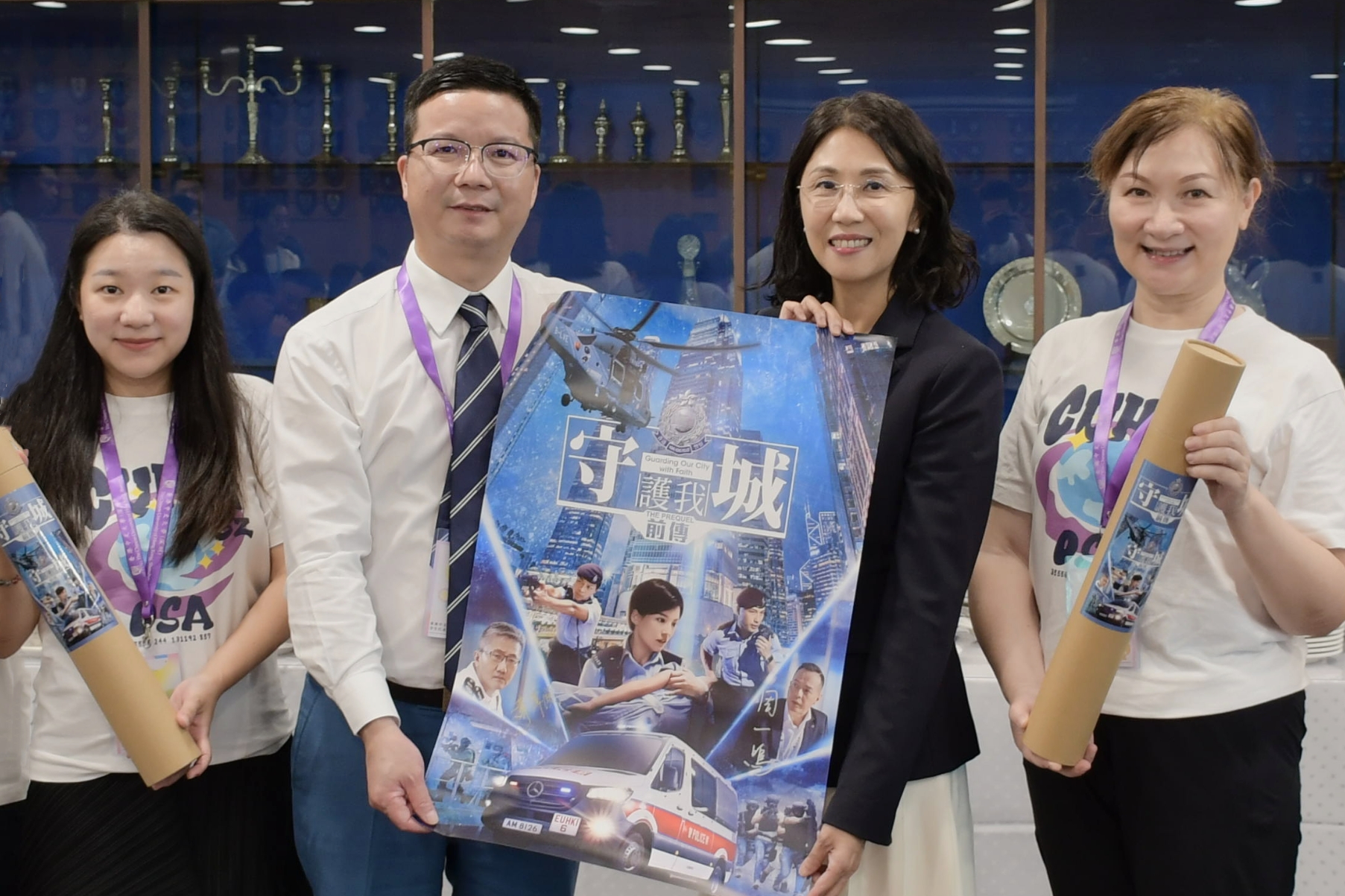 我校師生獲贈香港警務處處長蕭澤頤先生和副處長周一鳴先生親筆簽名的香港警隊新宣傳片《守城前傳》海報